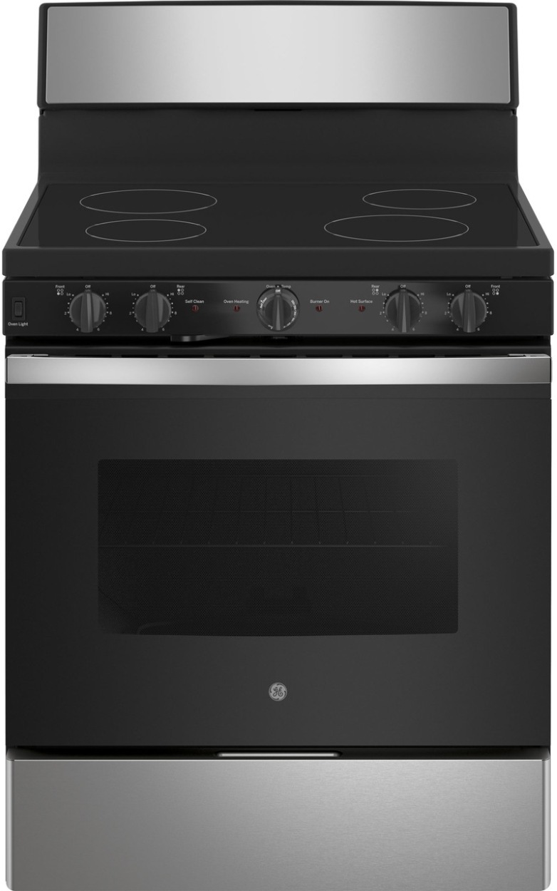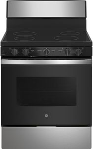 Complete your home kitchen system with the GE® 30" Freestanding Electric Range featuring front controls, 5.0 cu. ft. oven capacity, and self-cleaning function.Read More