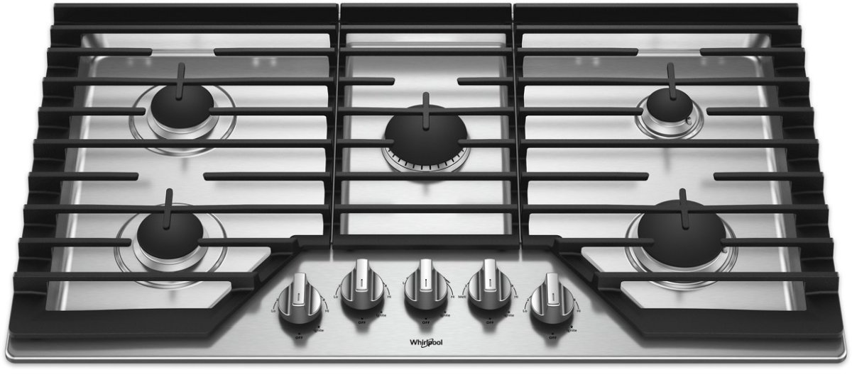 Whirlpool® 36" Gas Cooktop-Stainless Steel with 5 burners, dishwasher-safe knobs and cast-iron gratesRead More